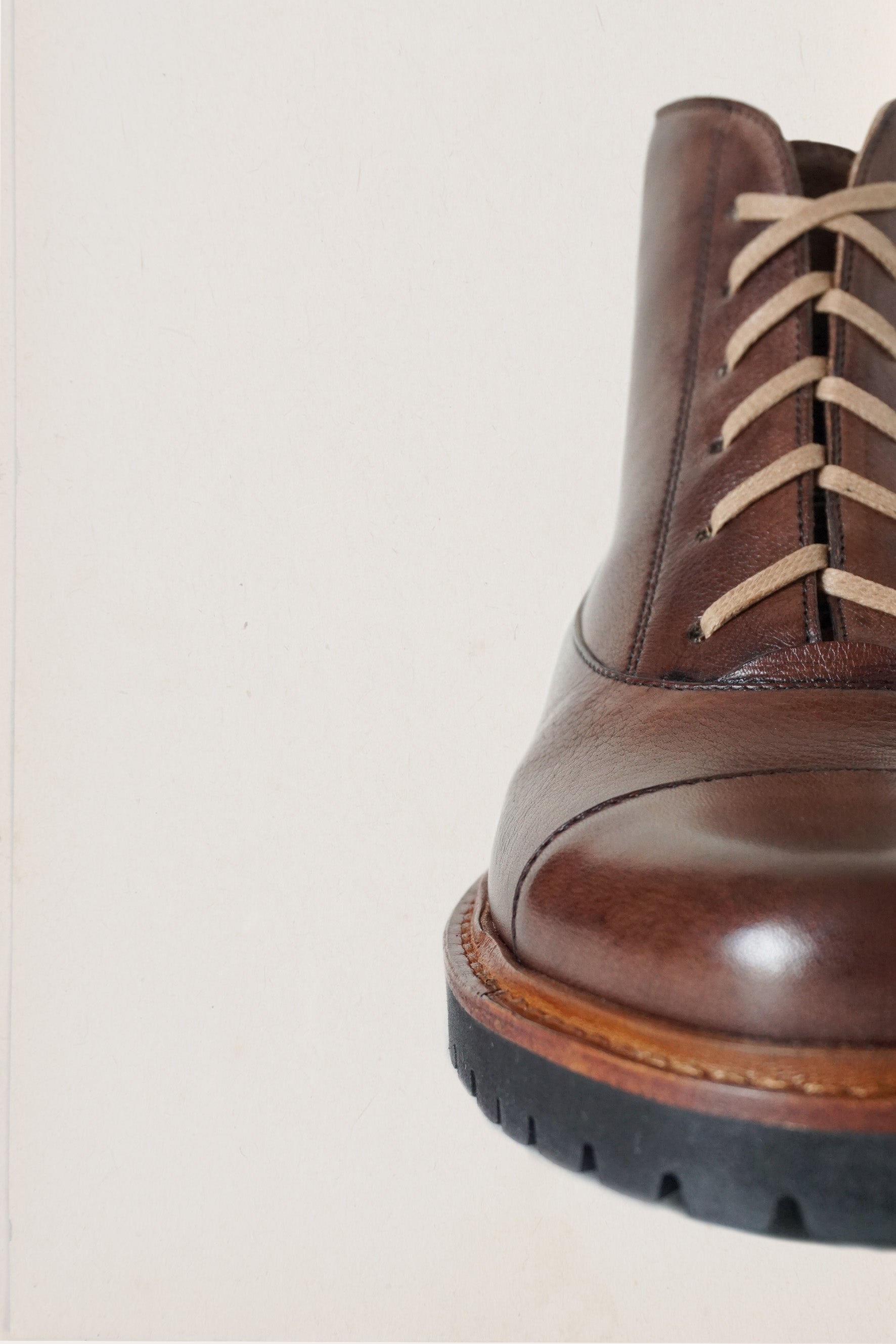 CHAPTER 2 shoes are made using traditional shoemaking techniques and plenty of hand processes including the hand built leather sole with painted brush stroke detail in the waist.